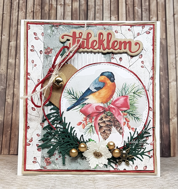 På begge kortene har jeg brukt mønsterark fra Papirdesign og motiv fra Mays Design. Motivet er stanset ut med sirkeldie med søm fra My Crafty Times, trærne er fra Sizzix og Juleklem/Julehilsen er fra Papirdesign.